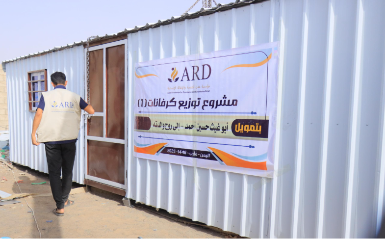 في إطار تدخلاتها الإنسانية الهادفة لتحسين ظروف معيشة الأسر الأشد تضررًا، نفذت مؤسسة عدن للتنمية والإغاثة الإنسانية مشروع توزيع الكرفانات السكنية لصالح عدد من الأسر النازحة والمتضررة، وذلك في محافظة مأرب وضواحيها.