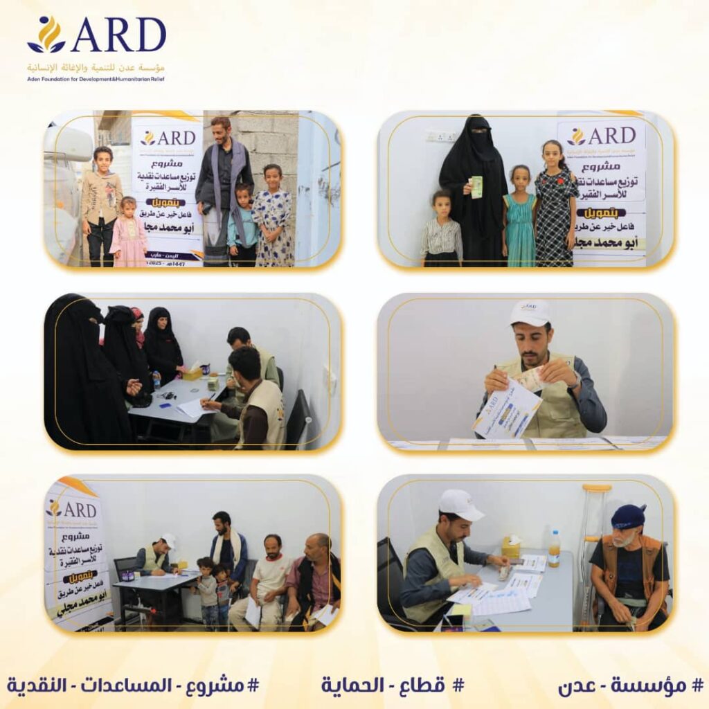بفضل الله ثم بعطاء أهل الخير.. وزعت مؤسسة عدن للتنمية والإغاثة الإنسانية مساعدات نقدية لصالح 120 أسرة فقيرة ونازحة في مأرب، لتكون عوناً لهم في توفير قوت يومهم واحتياجات أبنائهم. هذه المساعدات لم تكن مجرد مبالغ مالية، بل كانت رحمة وبسمة أمل خففت عنهم أعباء الحياة، ومنحتهم حرية اختيار ما يحتاجونه بكرامة واطمئنان. شكراً لكل […]